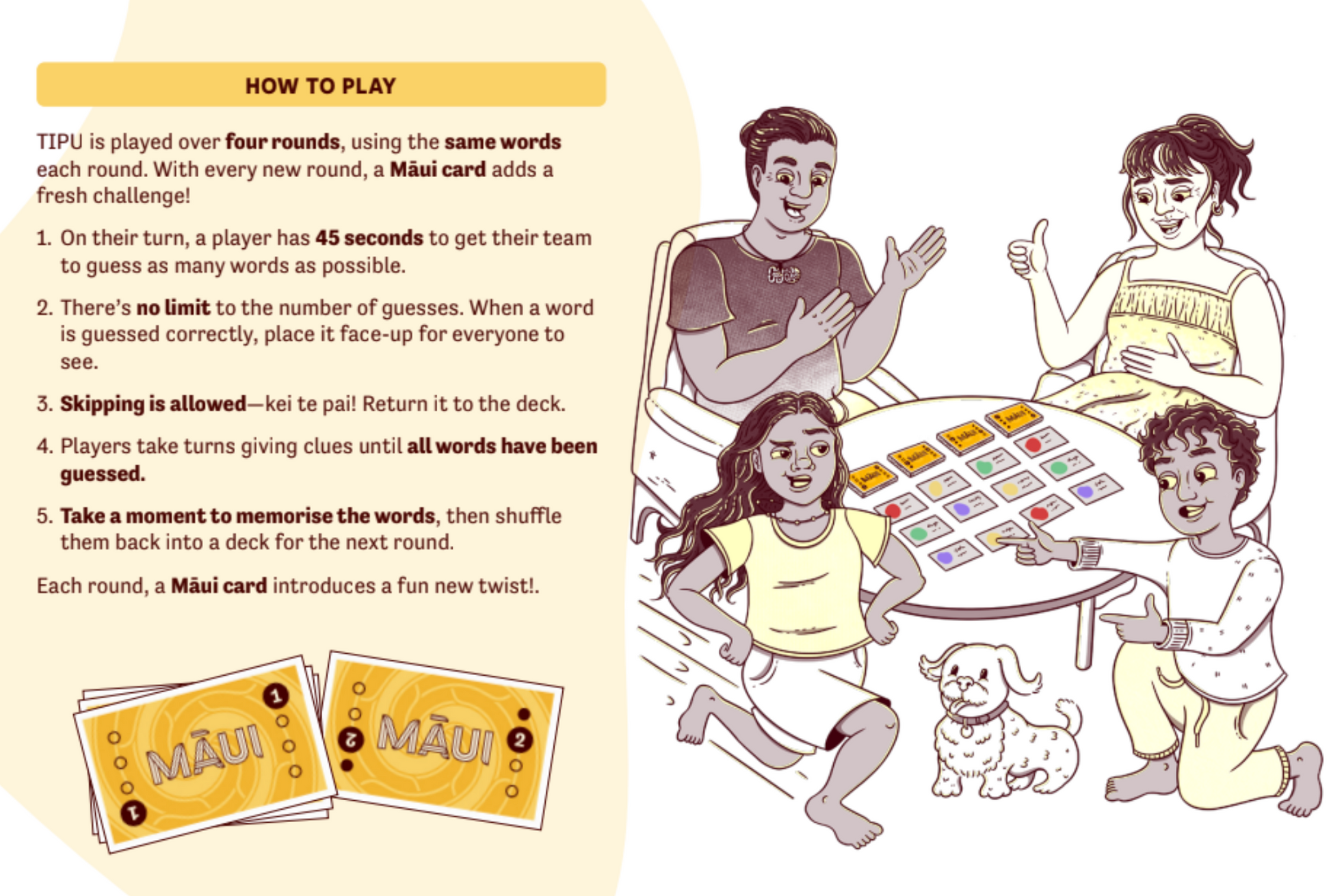 TIPU is a fast-paced bilingual word game full of movement, laughter, and clever clues. Learn te reo Māori as you play, across four Māui-inspired rounds with fresh twists each time.