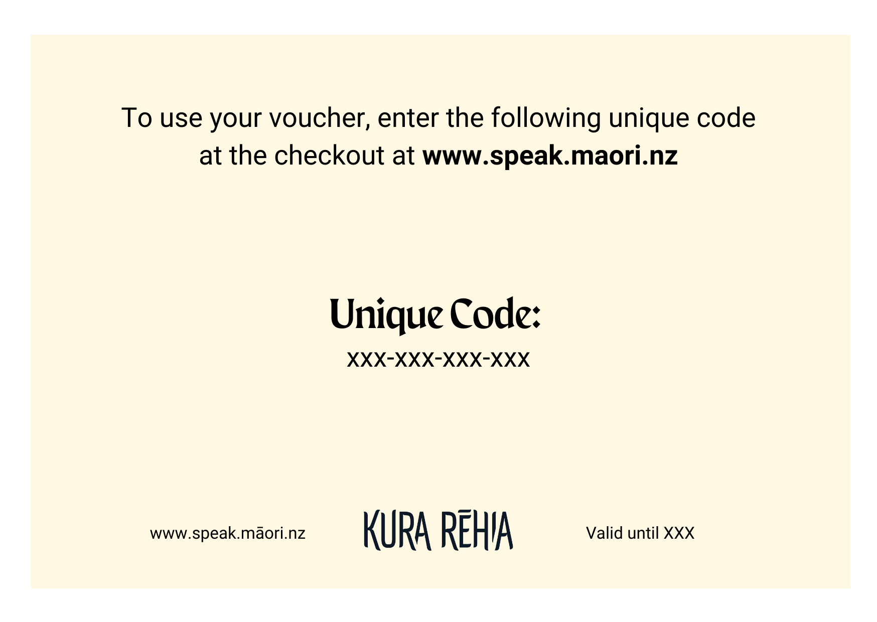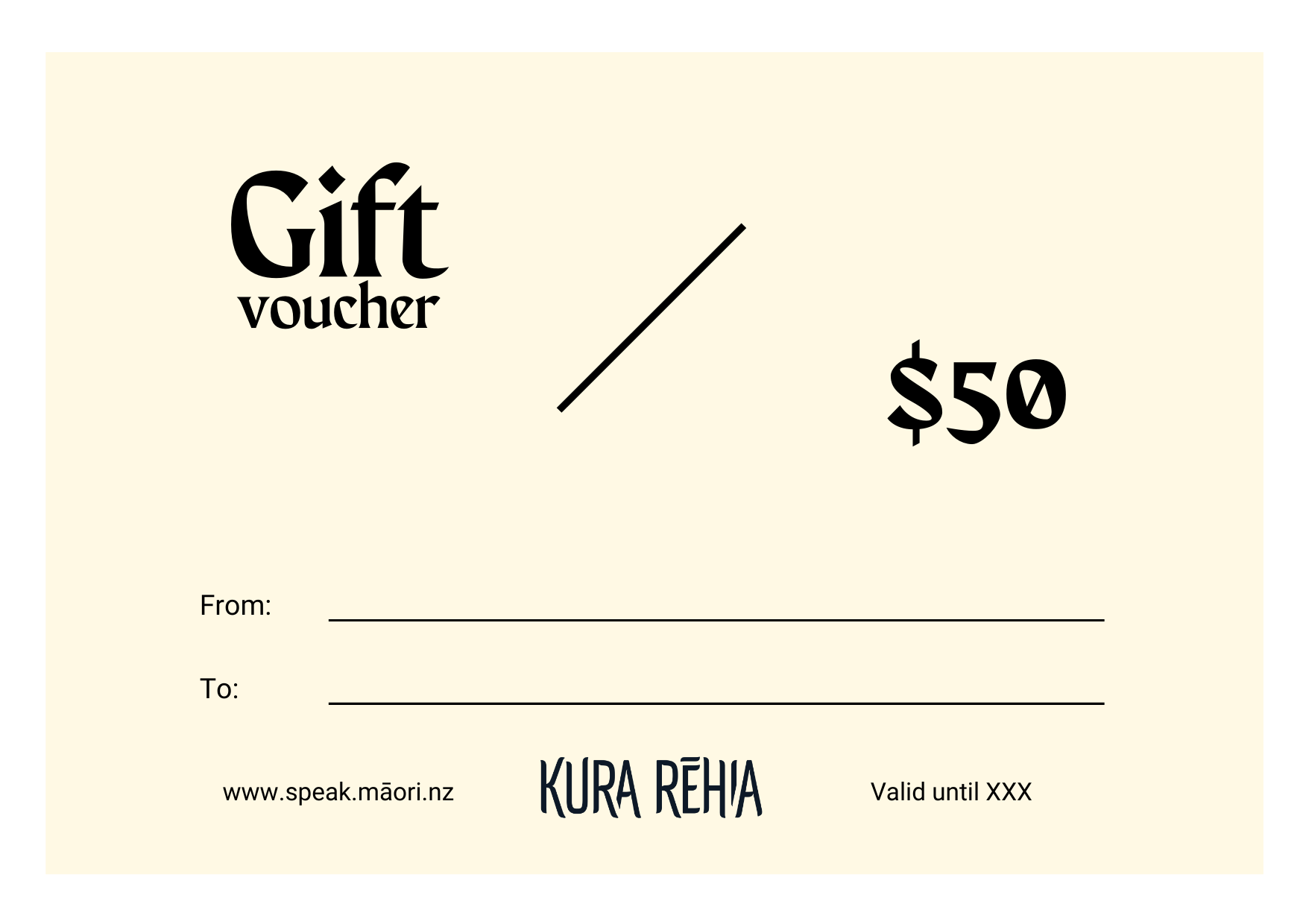 Gift a voucher that can be used on anything on the Kura Rēhia store.