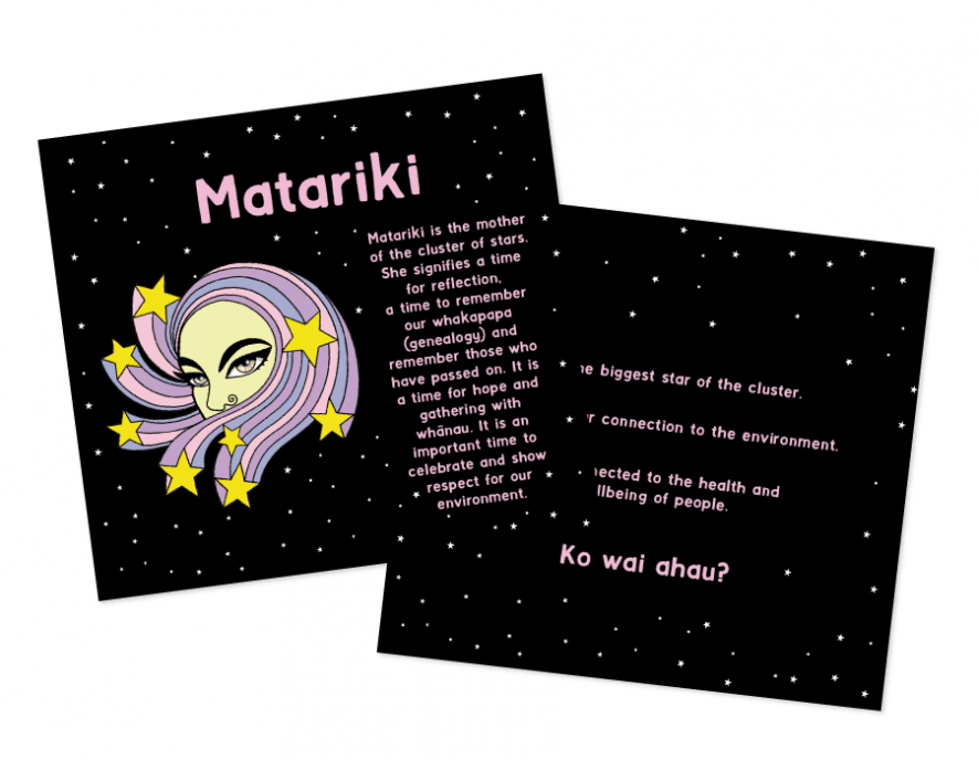 An interactive and fun way to learn, and remember, the different stars of Matariki. Each card has a description about each star. There are clues on the back of each card for the children to guess which star is on the other side. Great activity for mat times, or as beautiful, vibrant posters on the wall.