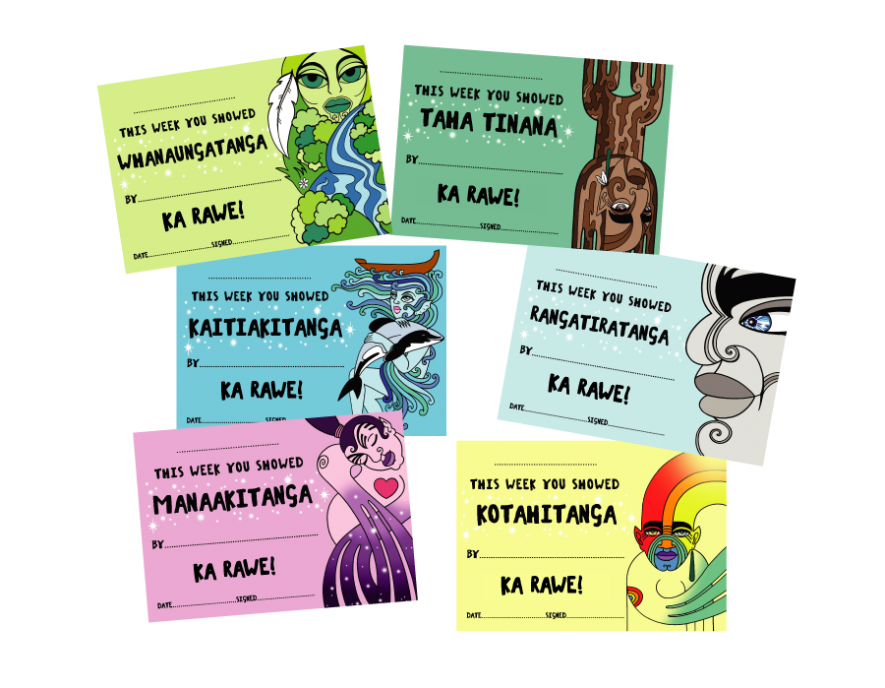 Each certificate also includes the kīwaha (colloquial phrase) Ka Rawe! -Awesome!