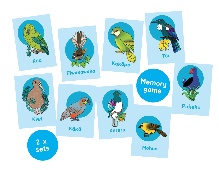 Learn the names of 9 different manu / birds of Aotearoa in te reo Māori with this memory/matching game resource. A great tabletop activity for all ages.