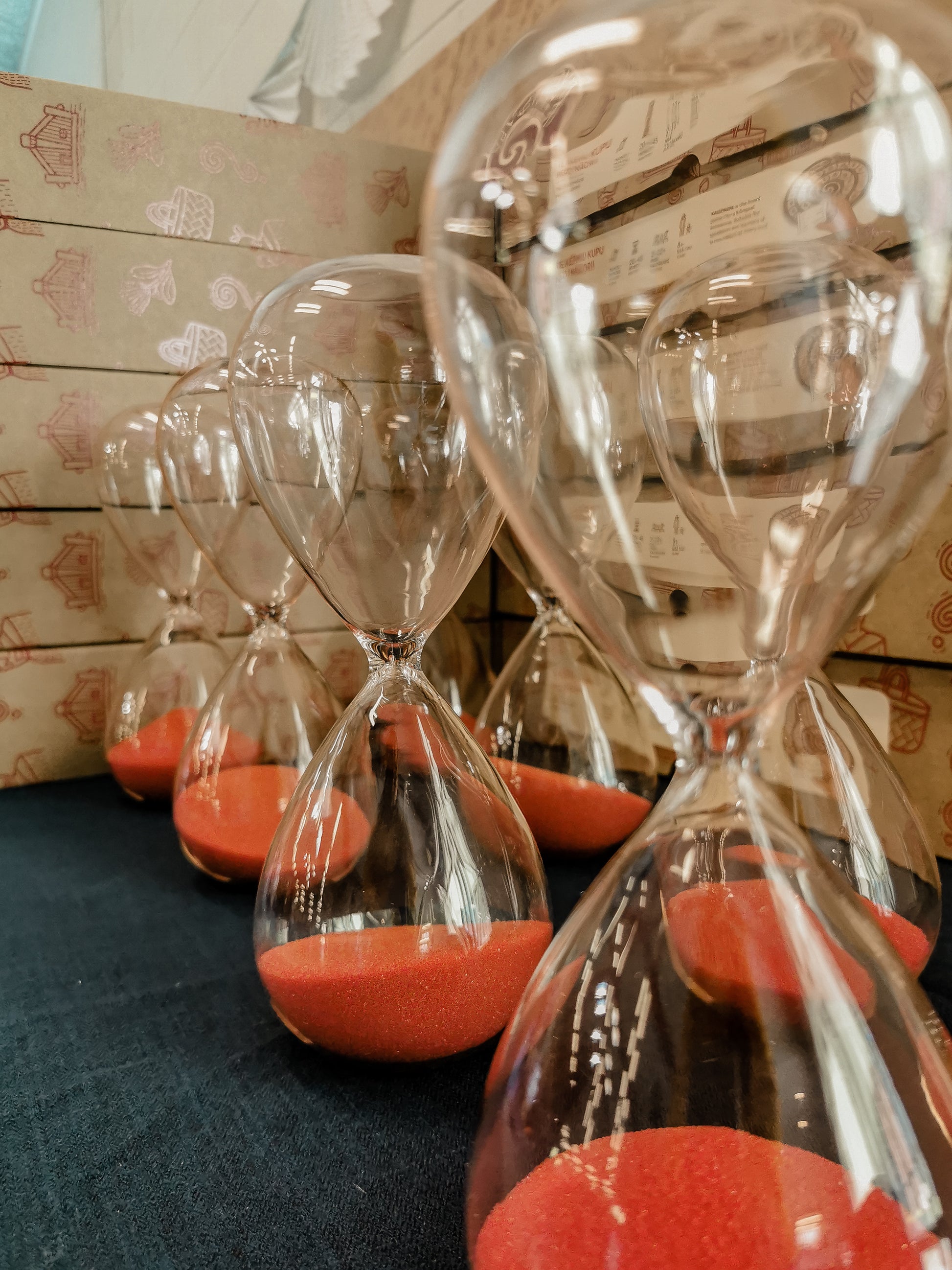 Take your gameplay to the next level with a beautiful hand blown glass sand timer!